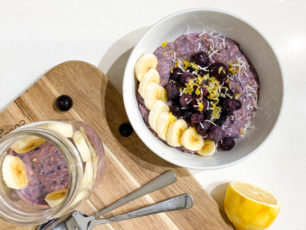 I’ve always really enjoyed overnight oats for their soft yet chewy texture, creamy mouthfeel and how easy they are to customize. But the one thing I didn’t like was that they didn’t keep me feeling full for very long after breakfast; probably because I often just used oats, plant milk and fruit for the longest time, which is mostly just carbs with little protein!