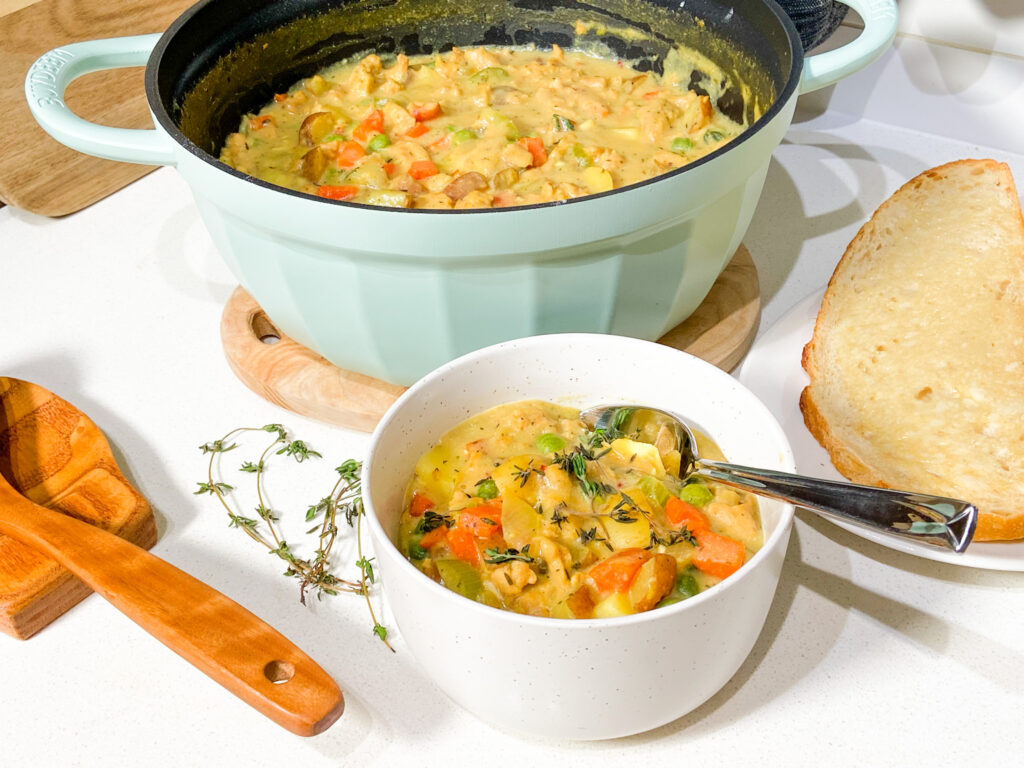 Crustless Vegan Chicken Pot Pie is the epitome of a one-pot recipe, making it a super easy meal to make on a weeknight: