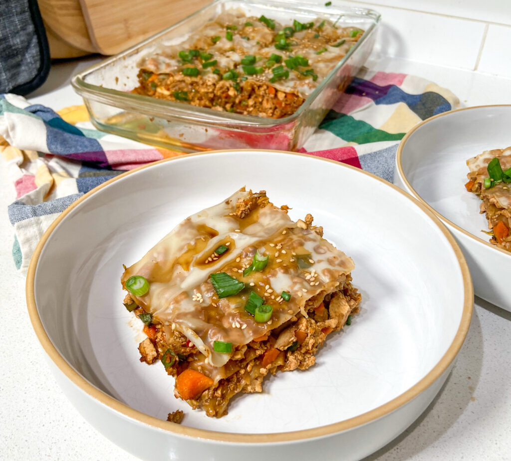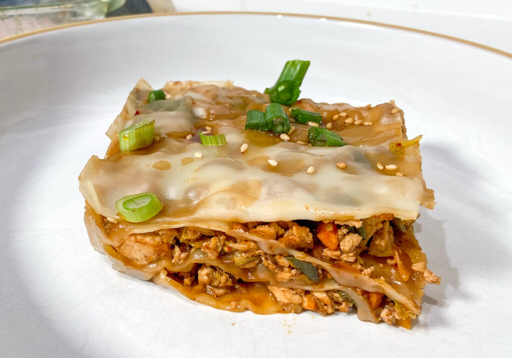 I don’t make every trending recipe I see on TikTok, but this ‘dumpling lasagna‘ really caught my eye. It essentially takes the main components of Chinese soup dumplings, aka wontons, and prepares them in an Italian-style layered lasagna. Genius. Most of the recipes I saw used ground pork, but a few plant-based versions I saw floating around used tofu instead. So I give you my own plant-based spin, introducing my Vegan Soup Dumpling Lasagna!